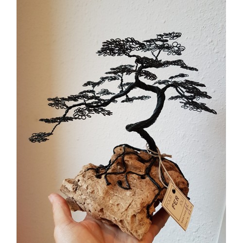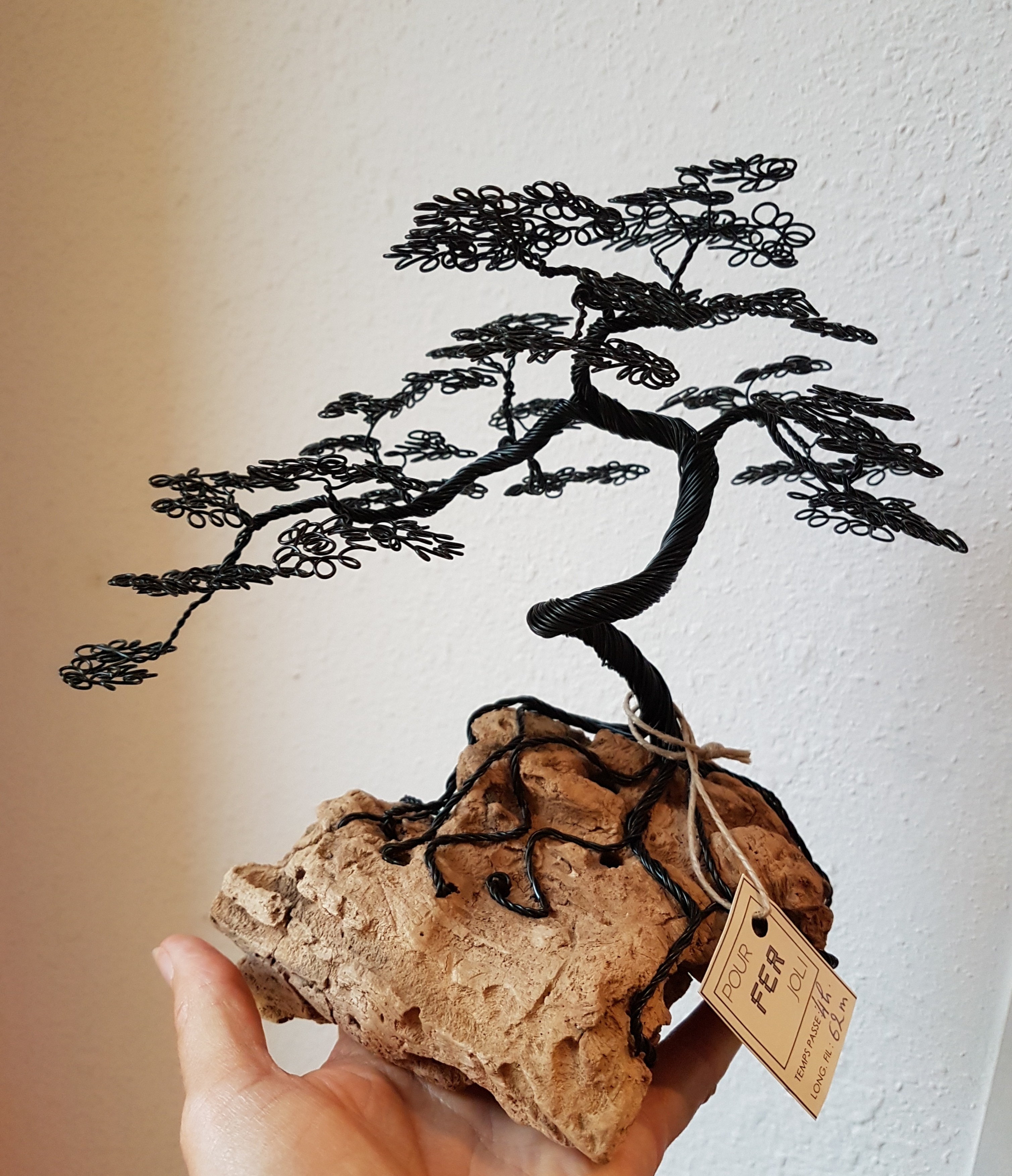 Bonsaï retombant noir aux boucles rondes et régulières.