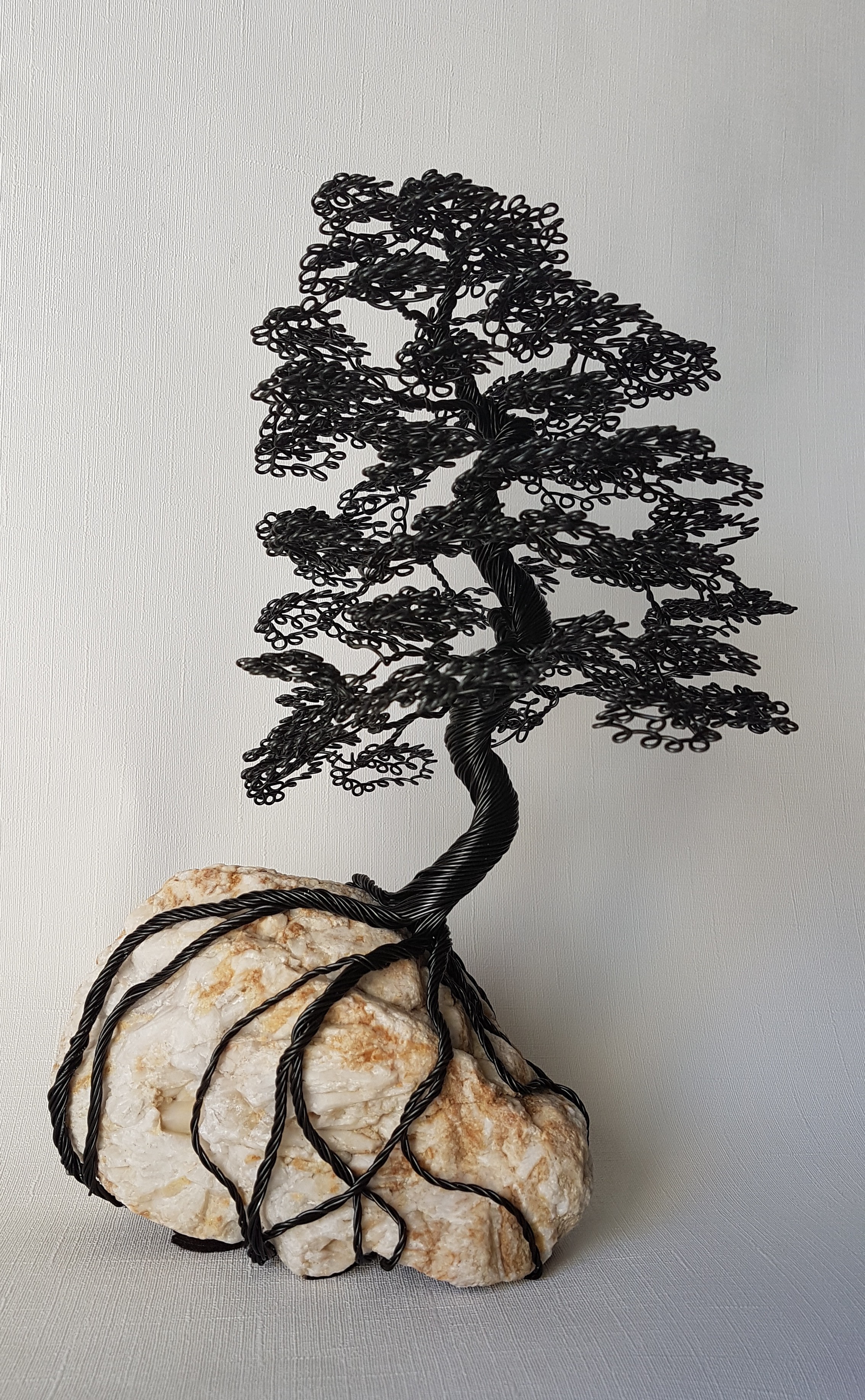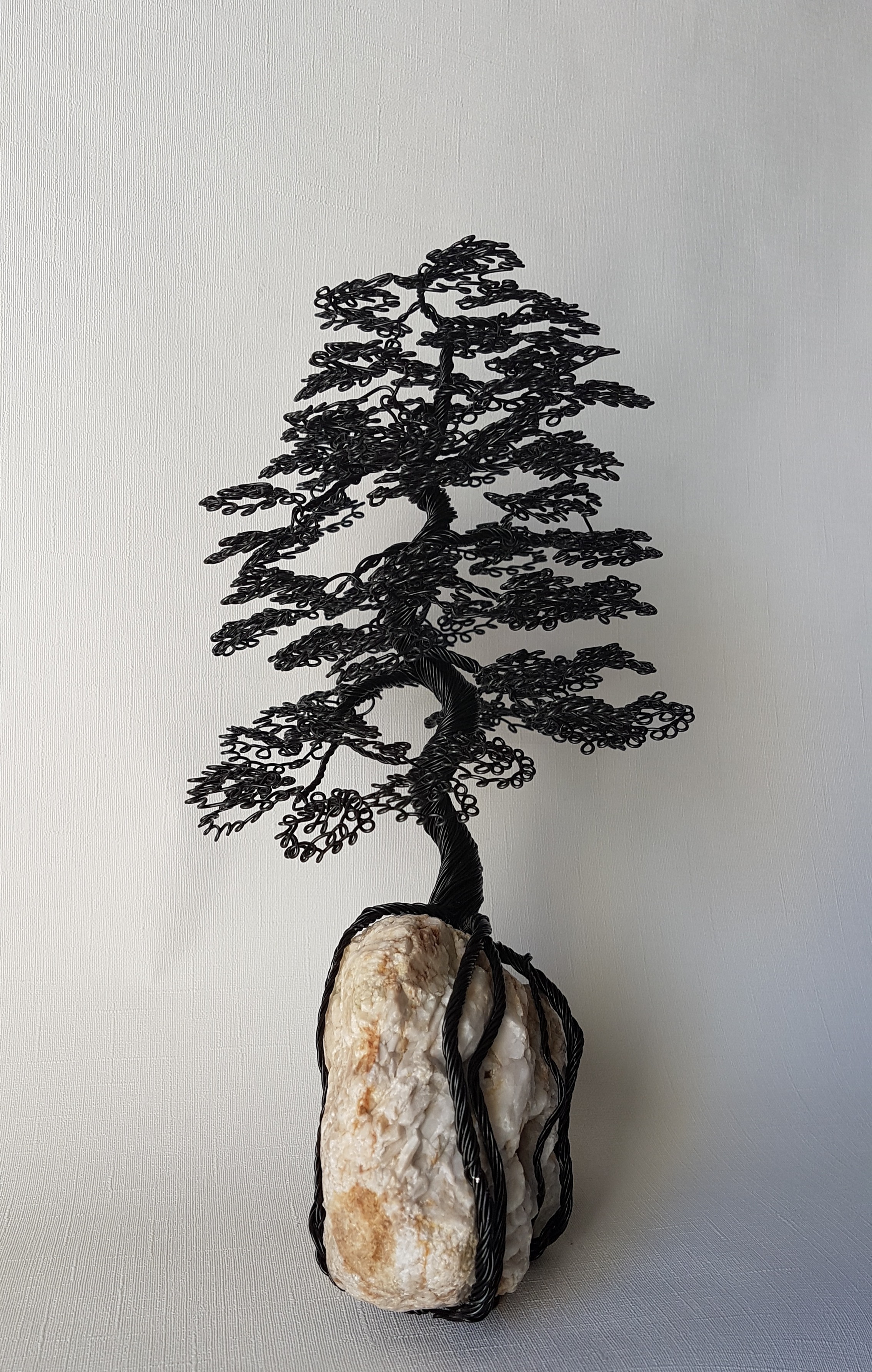 Arbre aux très minutieuses petites boucles rondes. Fait de plus de 80 m de fil.