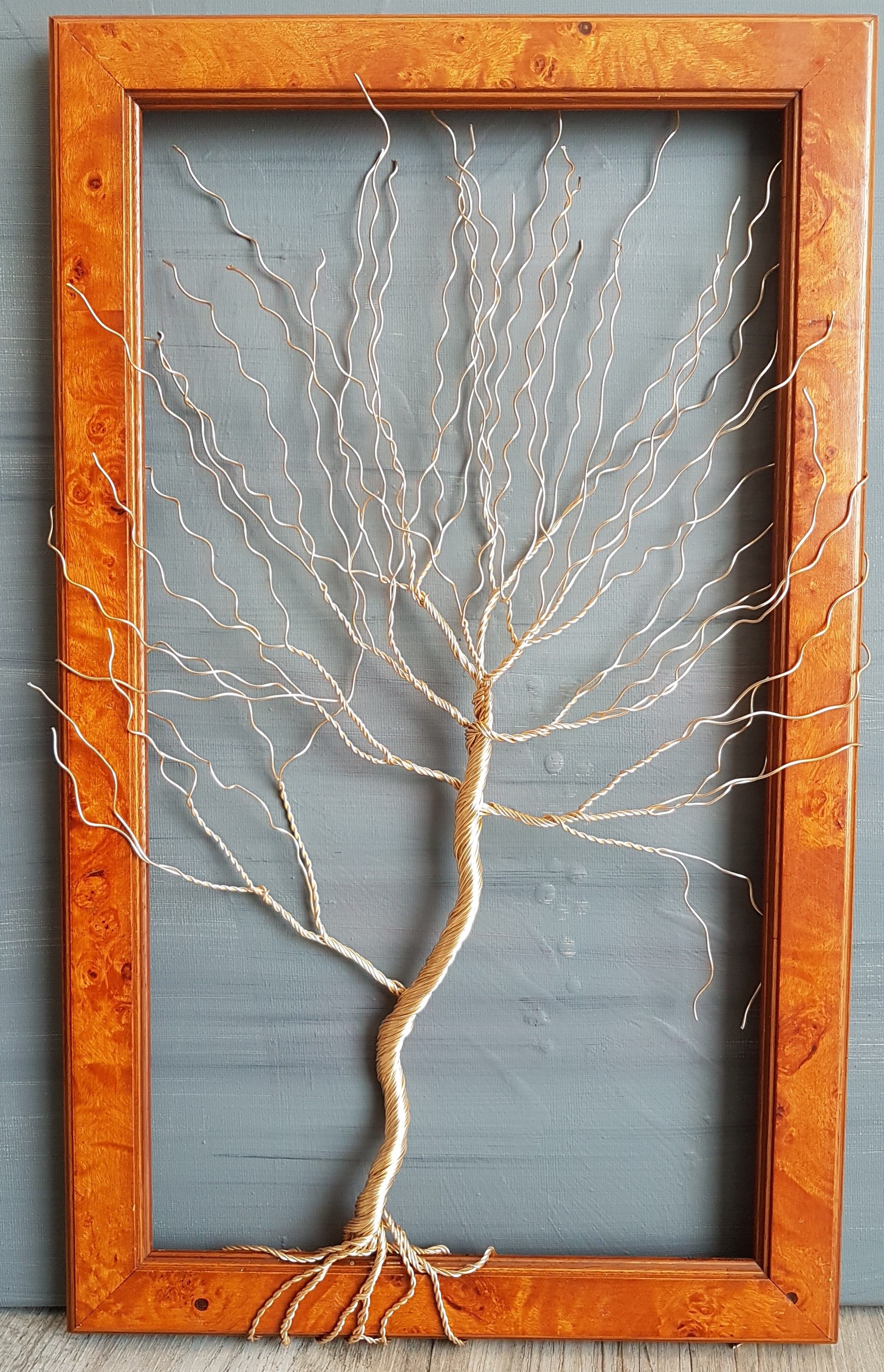 ARBRE BEIGE DORÉ, mis en valeur sur un cadre en orme vernis. Le fond vert peut etre remplacé ou simplement supprimé.