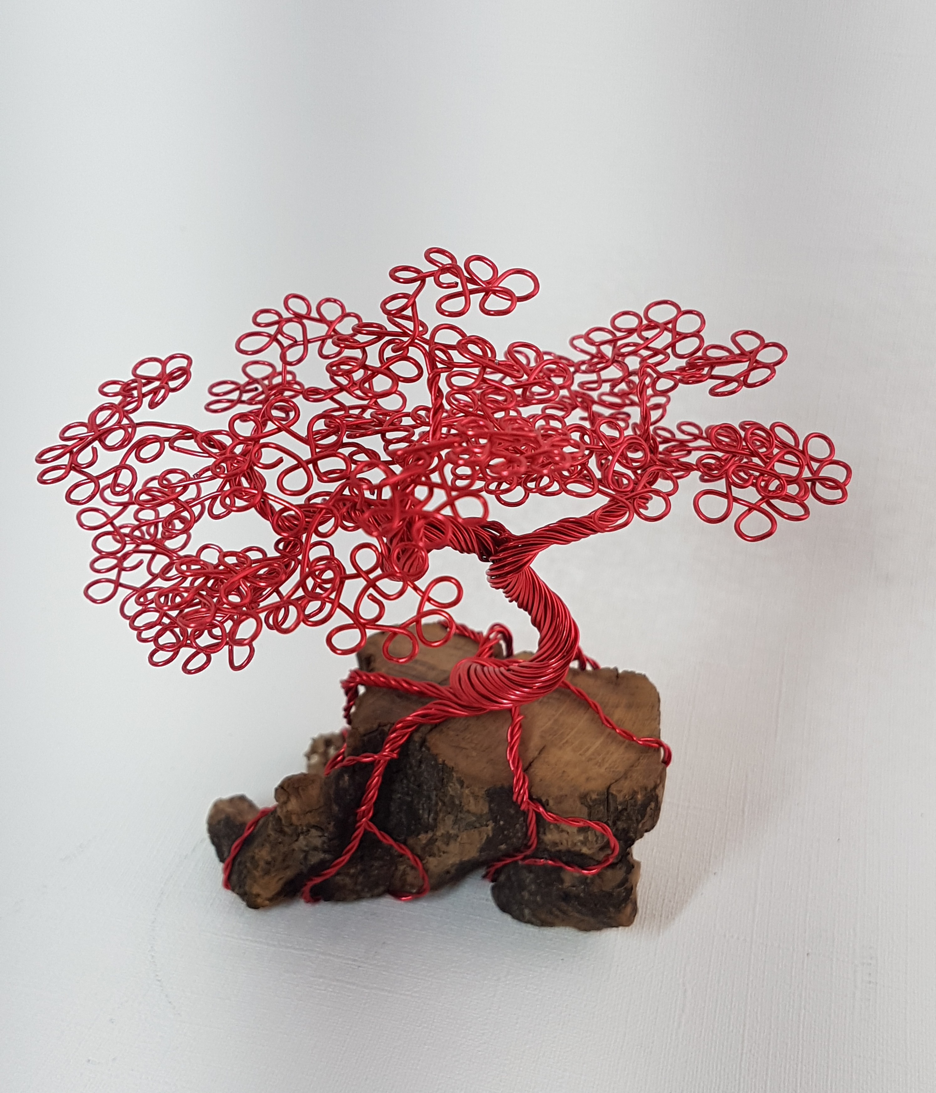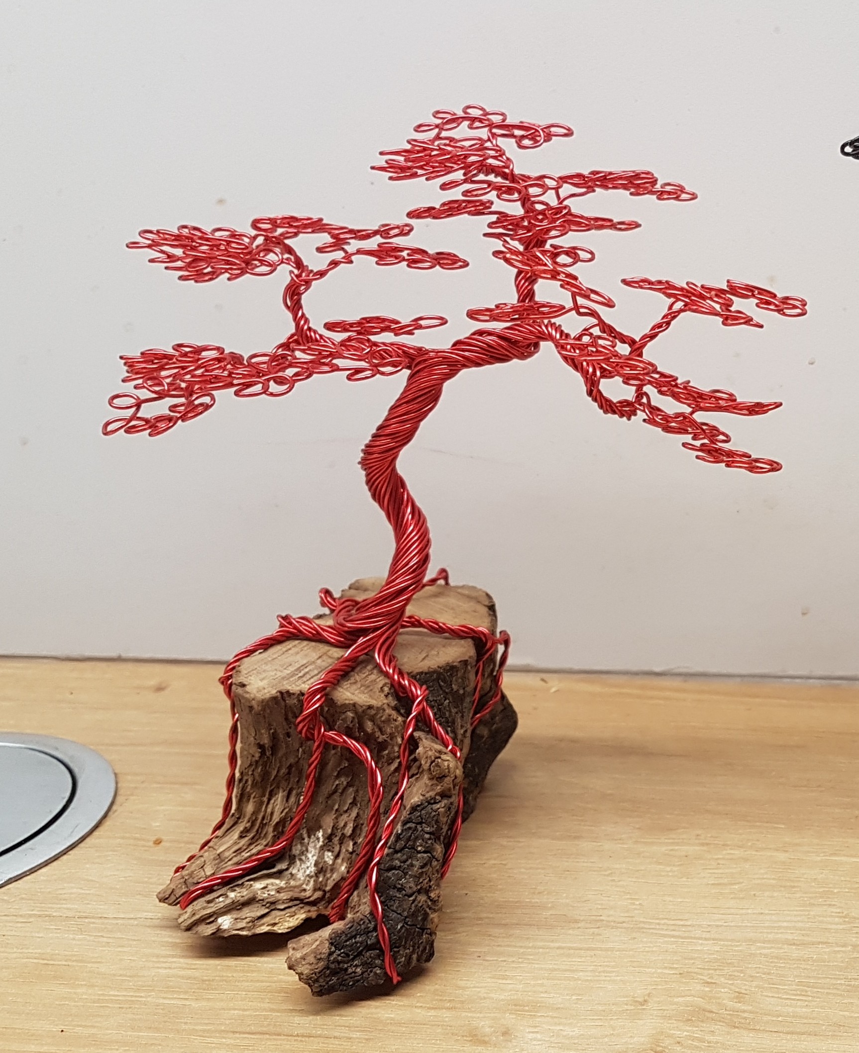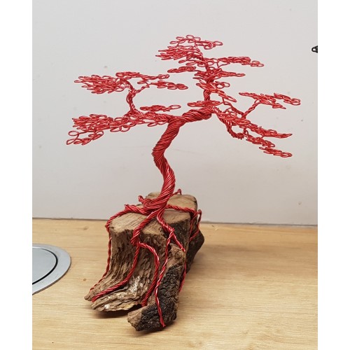 Très tonic ce petit bonsaï rouge bien fier sur son bois flotté à la taille franche.