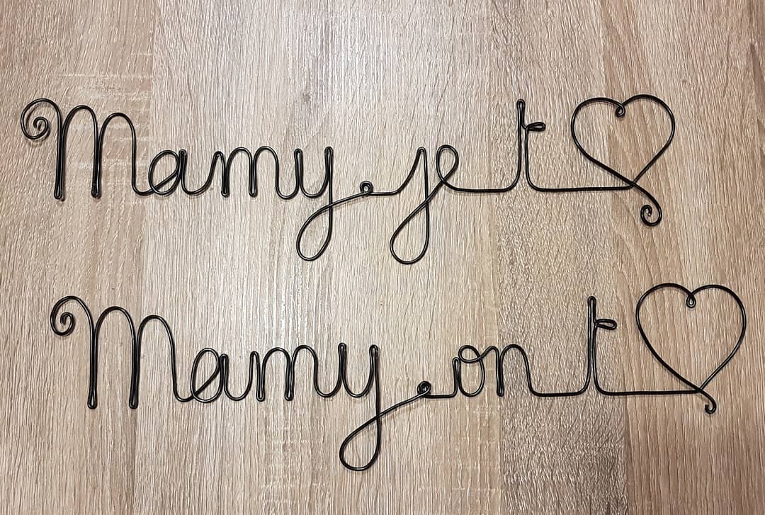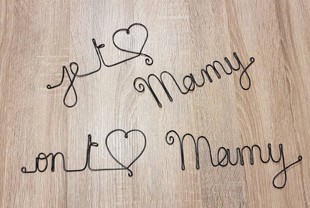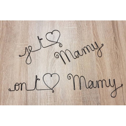 Un gentil message sculpté dans un fil de métal de 2 mm de diamètre, noir, et légèrement brillant. En 2 parties pour êtes disposé comme on le souhaite.
